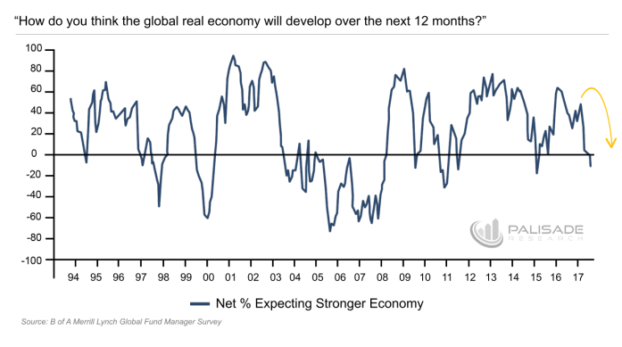 And making matters worse – the recent Bank of America survey that polls 230 panelists with over $660 billion of assets under management (AUM) show us that investor sentiment is slipping.