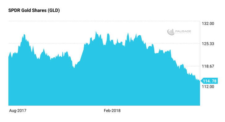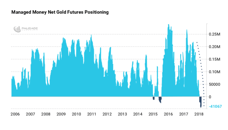 Gold’s down over 11% since 2018 began – thanks to heavy short sellers and a rallying U.S dollar.