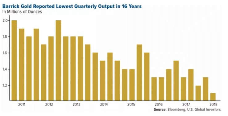 Kevin Dushnisky – President of Barrick Gold – has said that “falling grades and production levels, [as well as] a lack on new discoveries” are what’s going to drive the next gold bull market.
