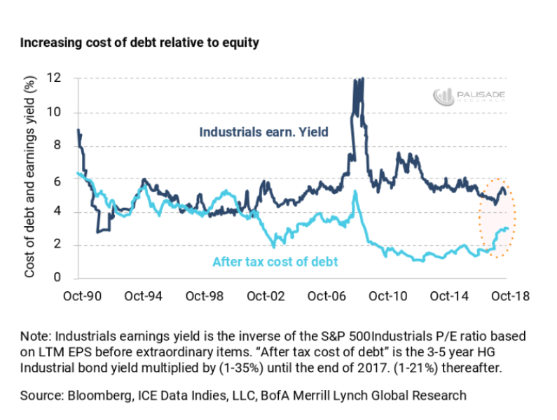 For instance – the cost of debt relative to corporate earnings is already noticeably souring.