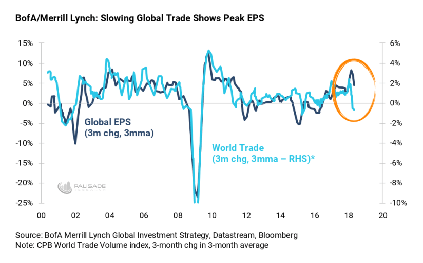 Bank of America/Merrill Lynch highlighted the correlation between world trade and corporate earnings.
