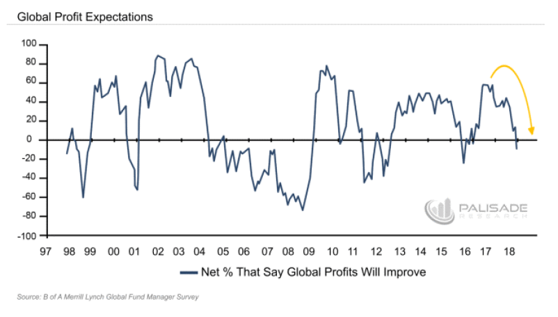 I also wrote back in July that according to Bank of America/Merrill Lynch – much of the ‘smart’ institutional money saw global profits dropping.