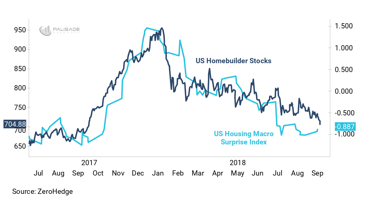 Just look at U.S. Housing Macro Surprise Index and U.S. Homebuilder Stocks Index – it’s declined tremendously this year. The S&P Supercomposite Homebuilding Index is down 21% year-to-date and on pace to be the largest annual drop since 2008.