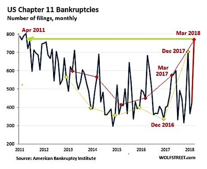 I think this is becoming more apparent – for instance, Chapter 11 bankruptcies have soared to 7 year highs.