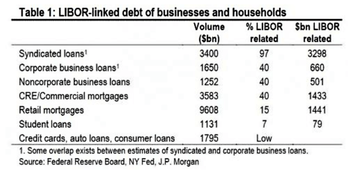 Both corporate and non-corporate business loans and commercial mortgages are about half tied to LIBOR. . .