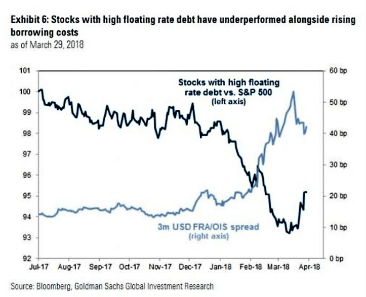 Just look at the stocks with high-floating rate debts (adjustable interest) having underperformed the S&P 500 when borrowing costs rose.